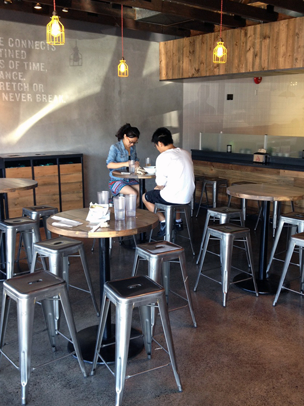 For a large chain, Noodlebox has done a great job re-imagining their brand. Using a limited color palate, custom fixtures, and a heavy hand of wood, the space is a balance of rustic and modern.